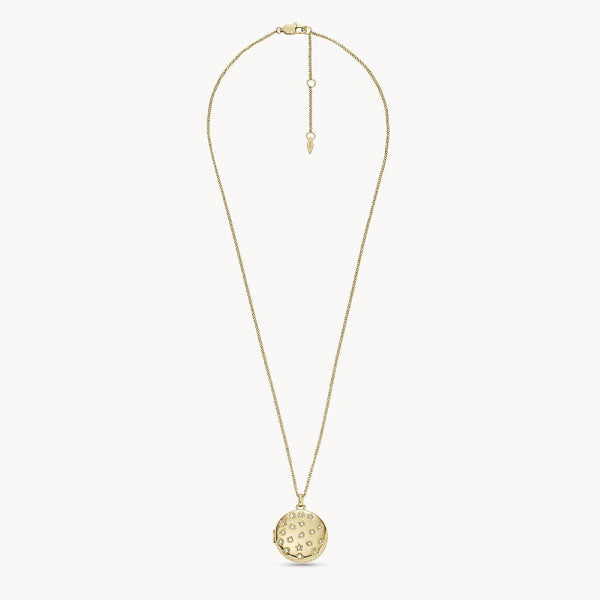 This gold-toned locket features a round design of zirconia crystals and pearl detailing