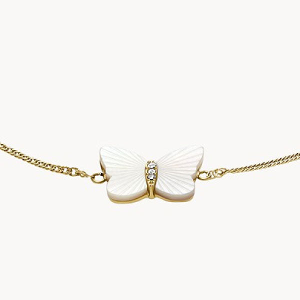 Fossil Radiant Wings White Mother of Pearl Butterfly Gold Bracelet