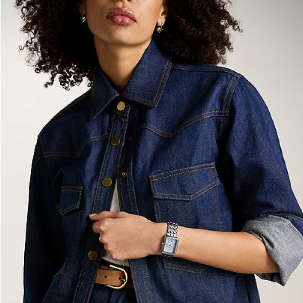 The Raquel watch is a true icon reborn. Its slim rectangular case and stainless steel bracelet exude timeless sophistication. A lustrous blue mother-of-pearl dial keeps things bright but versatile, while the three-hand date movement offers effortless functionality. Vintage-inspired yet refreshingly modern, it's a classic you'll keep in heavy rotation.