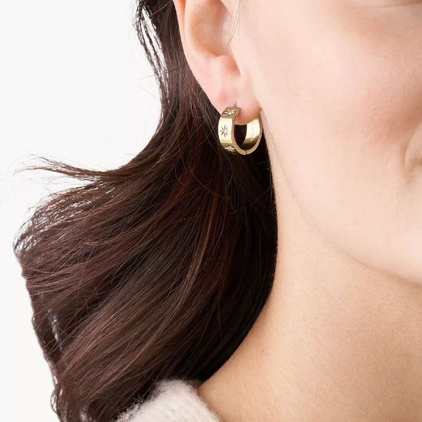 These hoop earrings feature gold-tone stainless steel and post closures.
