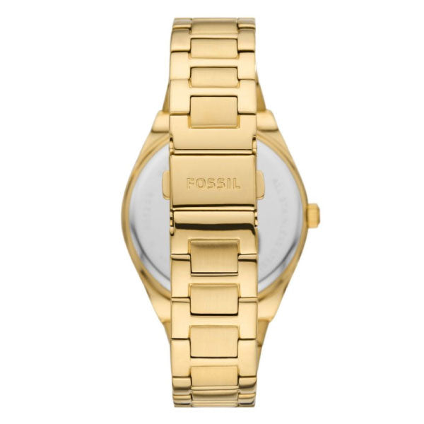This 38mm Scarlette watch features a gold sunray dial, three-hand date movement and gold-tone stainless steel bracelet.