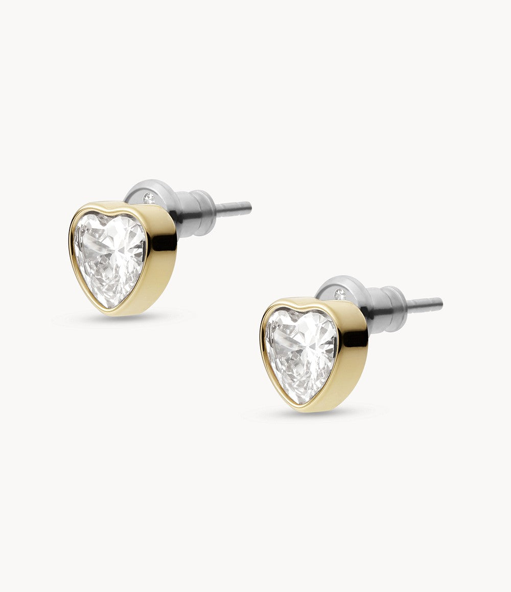 Fossil Sutton Valentine Heart Gold-Tone Stud Earrings