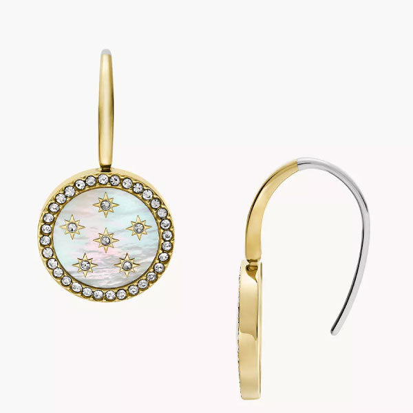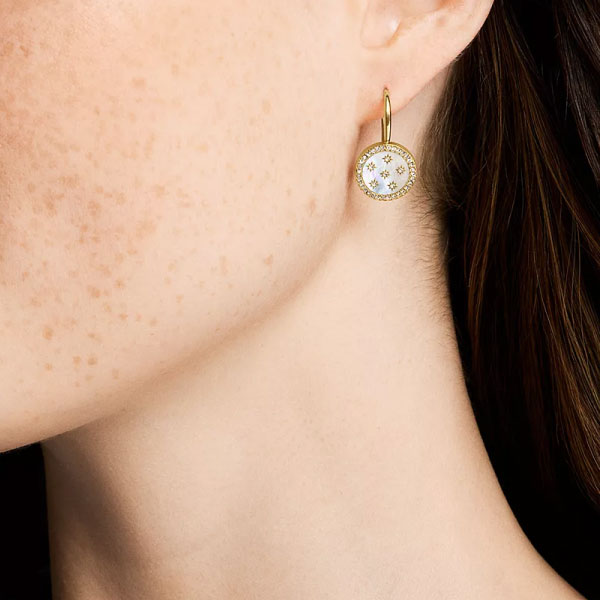 Refined and radiant, the Classic Mother-of-Pearl collection lends effortless elegance. Feminine and timeless, these drop earrings blend rich gold-tone stainless steel with luminous mother-of-pearl. A touch of sparkle from cubic zirconia crystals adds just the right amount of shine.