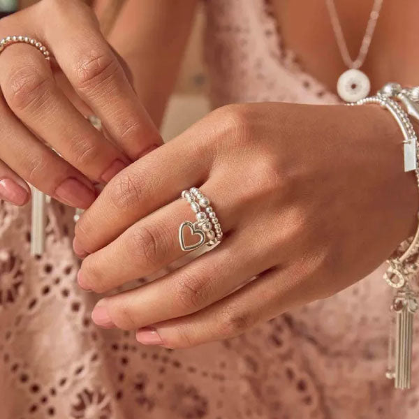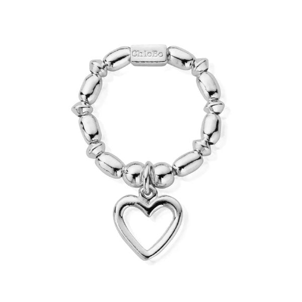 The Mini Rice Open Heart Ring is handmade using 925 sterling silver 3mm rice, 3mm discs and 4mm classic beads, as well as the iconic open heart charm. We wear the heart charm as a representation of the love we hold in our heart, be it for ourselves or a loved one. With everything you do, spread a little compassion. Stack up with another ChloBo ring for a statement look.