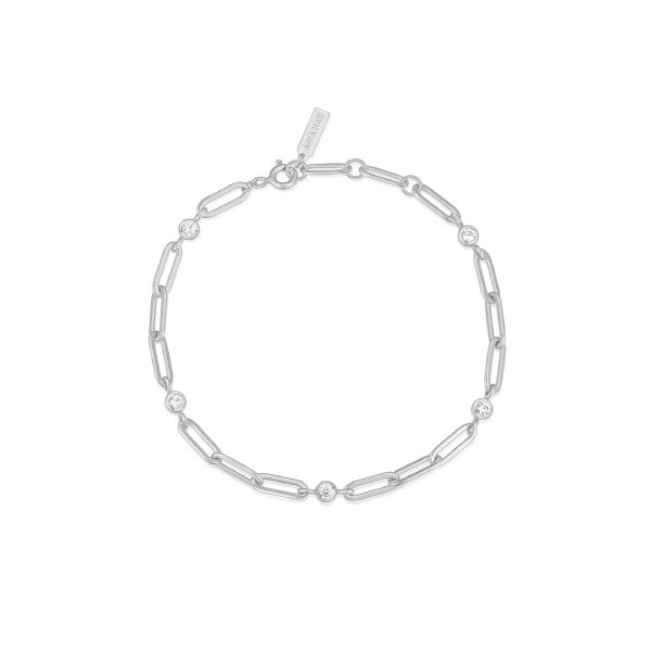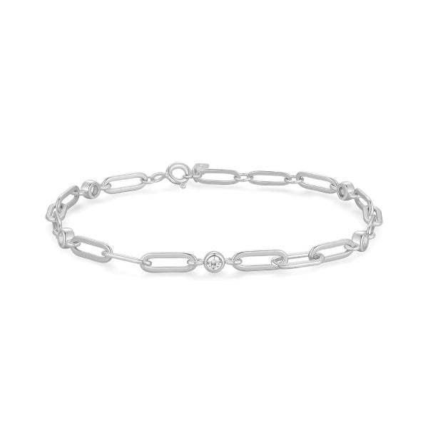 Silver Bezel Station Paperclip Chain Bracelet