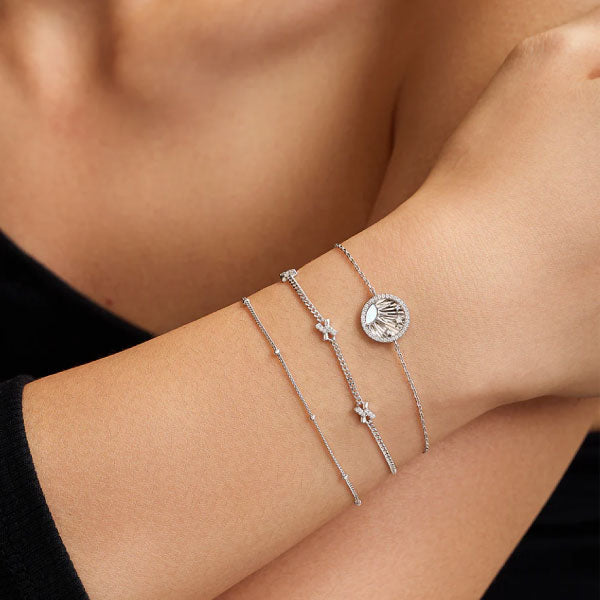 Get ready to shine with the cross station bracelet. Finished with the sparkle of cubic zirconia stones, its design comes from the latest crossing trends this season. Make this bracelet your stand-out piece or stack with your go-to gold chains.