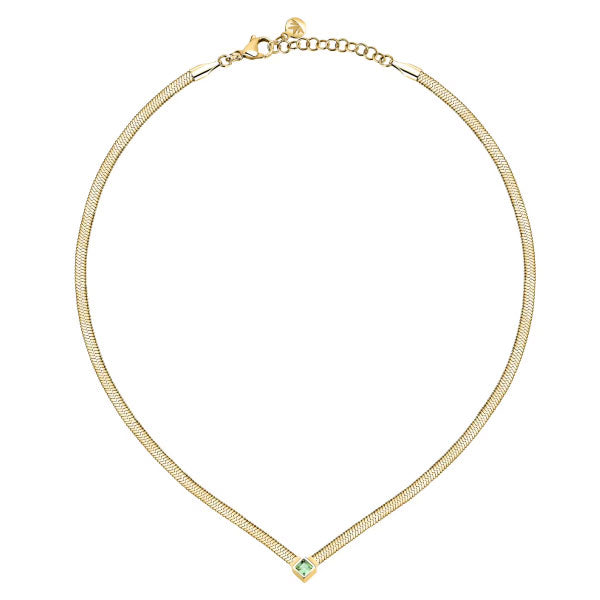 18ct gold plated snake chain style necklace finished with a green central crystal.