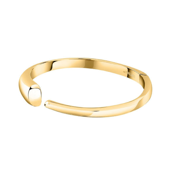 A beautiful 18k gold plated bangle with a hinged closure for ease of wear
