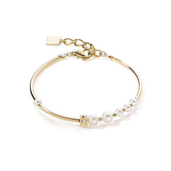 Made from genuine freshwater pearls, shimmering pavé-set crystals and fine gold stainless steel, this classic, elegant bracelet is bound to turn heads.