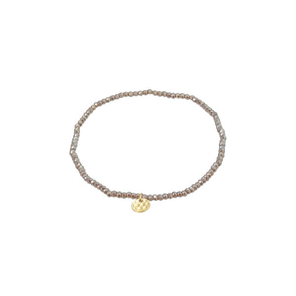 Wherever you go! Meet your new go-to for every occasion—the INDIE bracelet by Pilgrim. Its steel-grey faceted glass beads and subtle gold-plated Pilgrim logo catch the light and instantly elevate your look. Style it solo or stack it up with other bracelets in matching tones for a unique, personal twist. The bracelet measures 17 cm and is strung on durable lycra elastic, so it fits most wrists comfortably. Embrace the journey and let the INDIE bracelet follow you wherever adventure takes you.