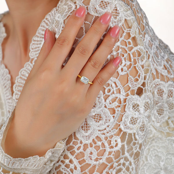 14 carat Yellow Gold Ring set with 2.08ct Emerald Cut Laboratory Grown Diamond in an East to West setting.