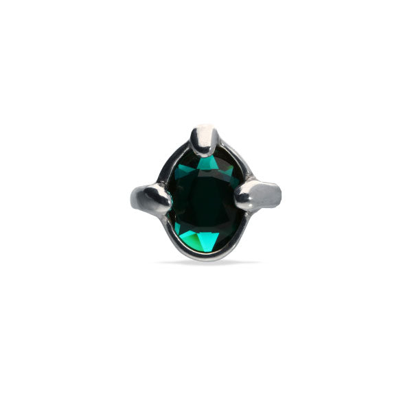 Experience the power of duality with our ring from the Ser Deslumbrante collection. This designer jewellery piece fuses the robustness of its organic form with the deep luminosity of an emerald-toned faceted crystal. The structure, designed to protect and enhance, wraps around the vibrant green, creating a captivating contrast that won't go unnoticed. This elegant ring is the perfect manifestation of how the delicate and the firm intertwine to form a unique piece of jewellery. Ideal for those looking for fashion accessories with character that add a touch of sophistication and mystery. A must-have for your timeless jewelry collection.