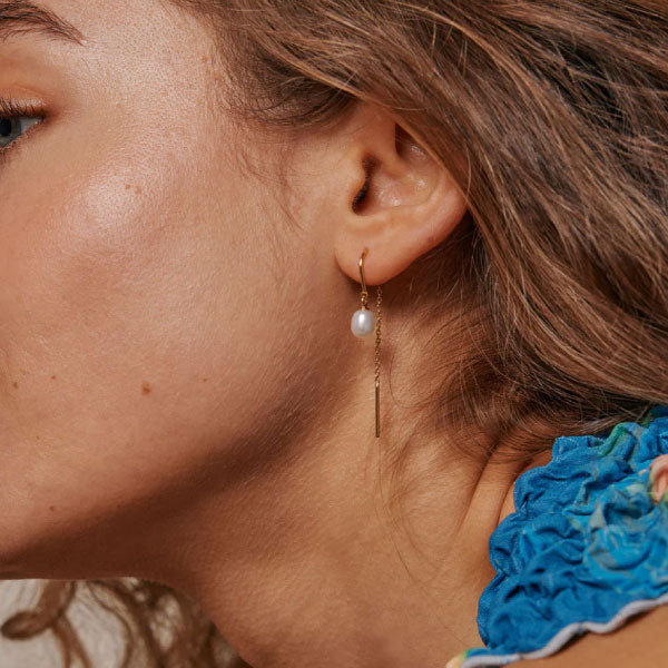 The Eleanor Pearl earrings are in a class of their own with an elegant freshwater pearl. The earrings are the perfect mixture between sophisticated, classic, and playful.