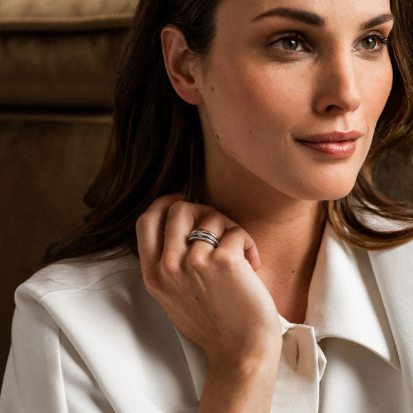TI SENTO stacked ring made of rhodium plated sterling silver. The ring has gold plating and is pavé-set with zirconias.