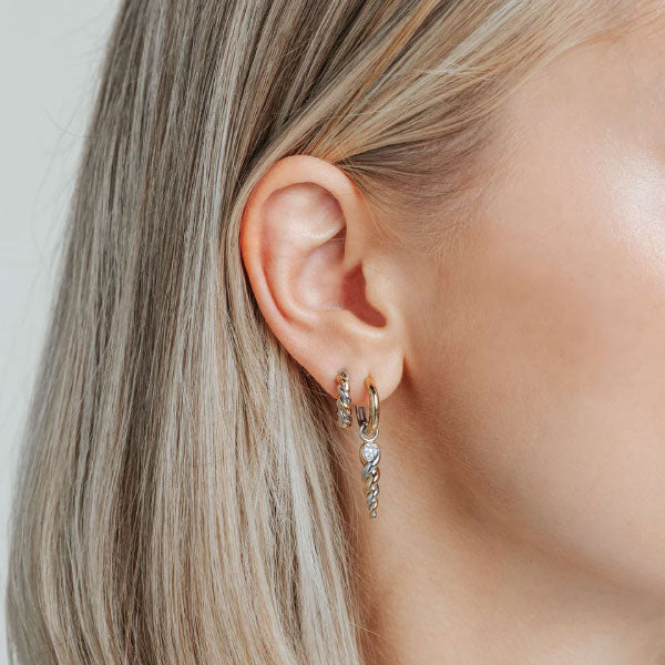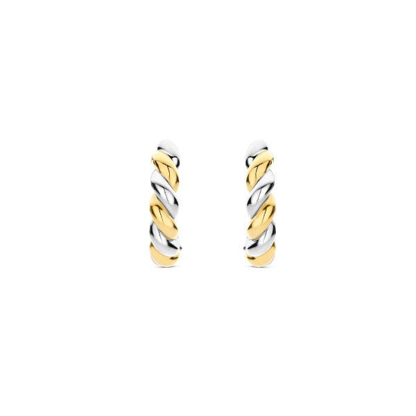 Crafted from premium 925 sterling silver, these hoops feature a twisted rope design, intertwining radiant yellow gold plating with sleek sterling silver for a striking two-tone effect. A modern twist on vintage elegance, these earrings bring effortless sophistication to any look—perfect for stacking or wearing solo as a statement. Their polished finish catches the light with every turn, while the secure hinge closure ensures a seamless fit. Nickel-free and hypoallergenic, they promise luxurious comfort all day long.