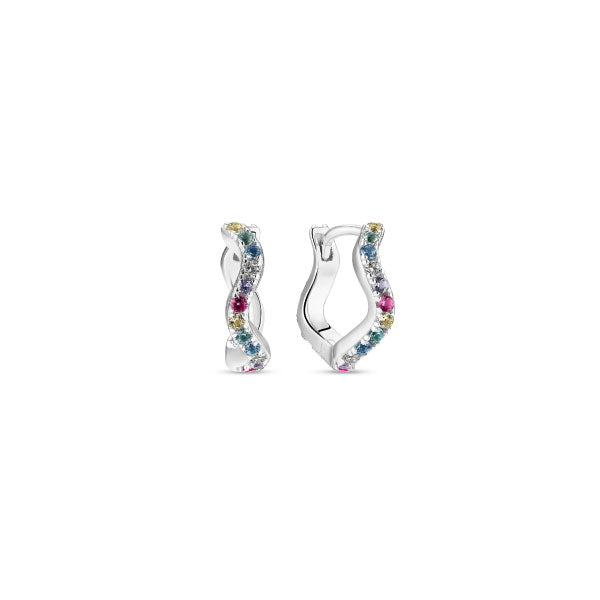 Add Ellera Waves Multicolour Zirconia Medio Silver Hoop Earrings to the cart