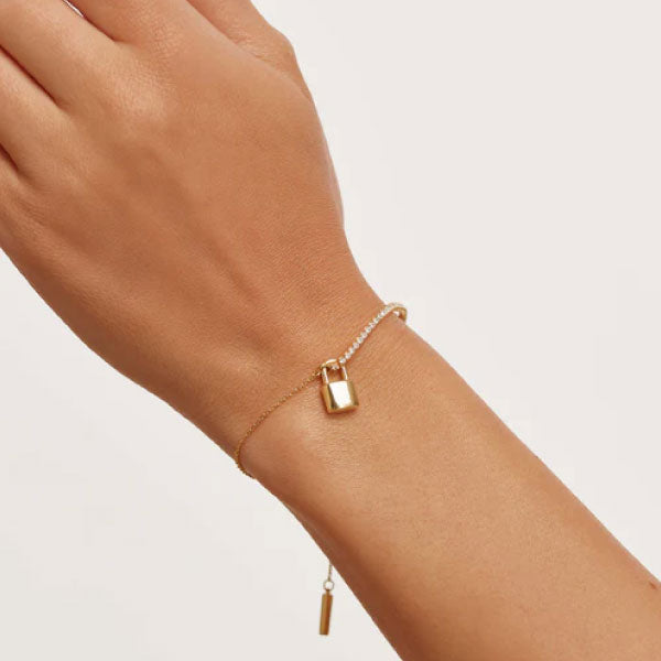 Gold-plated sterling silver bracelet with white zirconia and personalized padlock pendant