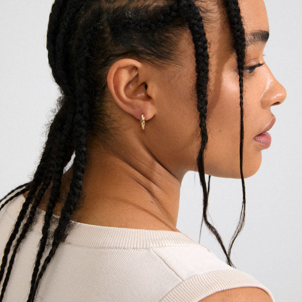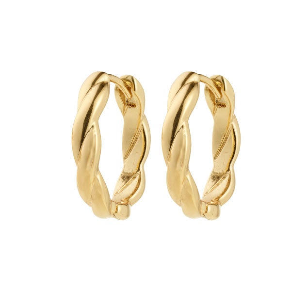 The gold-plated DECLAN hoops from Pilgrim marry timeless design with exquisite twisted details, providing an effortless and stylish touch to any look. Featuring easy-to-use click clasps, they are both practical and ideal as a staple in your jewellery collection.