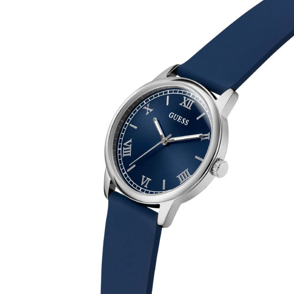 Monochrome done right. Chandler matches a vivid blue dial with a coordinating blue silicone strap for a streamlined look. The wearable 40 mm case suits most wrists, while minimalist markers keep the focus on colour.
