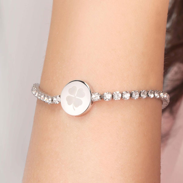 Add Sector Stainless Steel Woman's 4 Leaf Clover Tennis Bracelet to the cart
