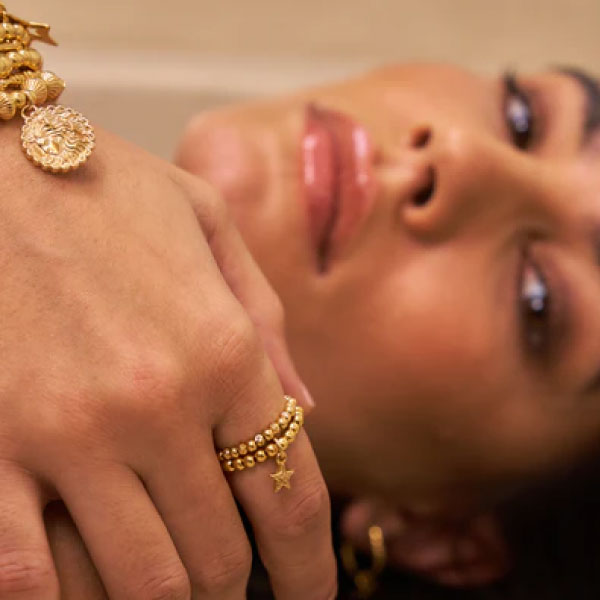 Showcasing an iconic new design, this ring entwines two designs into one piece, giving the appearance of a layered, stacked look in a single ring. The Mini Raised Star charm symbolizes hope, guidance, and trust in the path ahead, making it a meaningful addition that effortlessly combines style and sentiment.