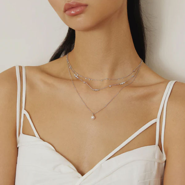 Miss Dainty is designed for the woman who loves elegance with a touch of whimsy. This pearl drop pendant necklace is crafted with delicate details, embodying grace and subtle sophistication. With a slider for free adjustment, it can be worn as multiple pieces or layered with other chains for an eye-catching look, making it perfect for both formal occasions and everyday wear.