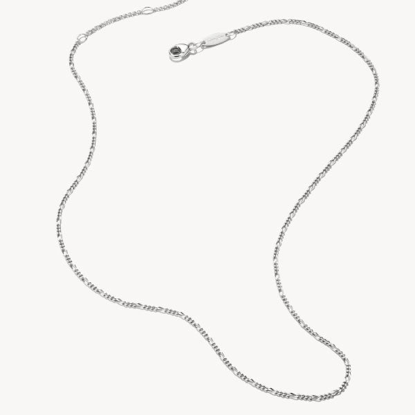 This charm necklace is a must-have for your jewellery collection. Crafted from 925 sterling silver, it showcases a timeless Figaro-style design with a harmonious mix of oval and round flat links. Its sleek and elegant appearance makes this necklace a versatile styling piece. Measuring 45 cm in length, it also includes an extension chain for an adjustable fit. Style it freely with your favourite charms to create unique jewellery pieces – meaningful or simply perfect for your personal look.