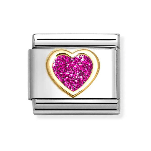 Add Nomination 18k Gold with Pink Glitter Enamel Heart Link to the cart