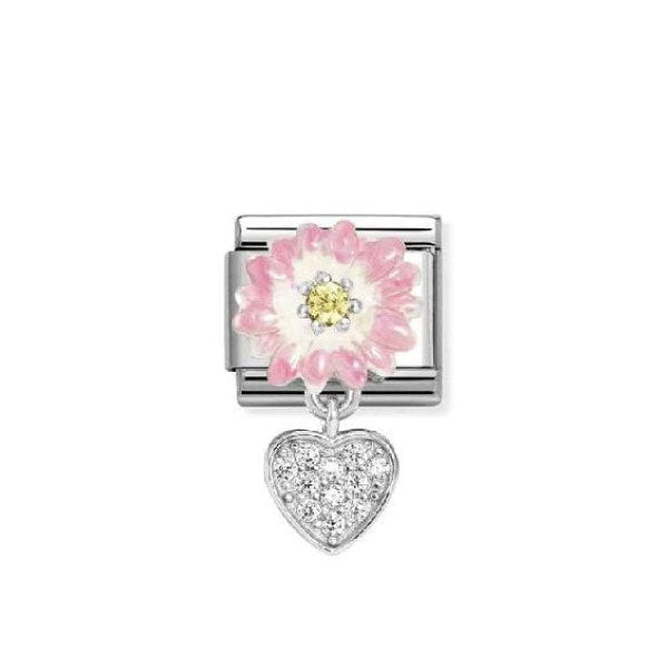 Add Composable Classic CHARMS steel, 925 sterling silver, enamel and cz Pink daisy with heart to the cart
