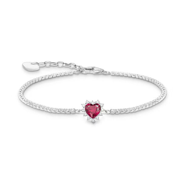 The heart-shaped, lab-grown, bright red ruby is the symbol of love and the centre piece of this unique piece of jewellery. The bright red stone is surrounded by fine, white zirconia stones. The finely worked bracelet made of recycled silver comes with an extension chain. Thanks to the latter, the bracelet’s length can be adjusted between 16 and 19 cm, so that it fits your wrist perfectly.
