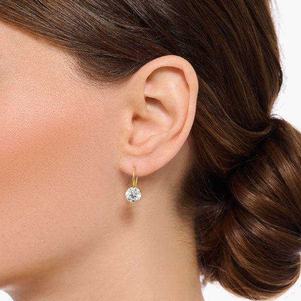 These earrings made of 925 Sterling silver with 18k gold plating and a white zirconia stone with a cabochon cut boast a simple and elegant design. They are the perfect accessory for everyday looks, casual as well as elegant outfits. Furthermore, they come with an ear hook, which is why they are easy to put on and comfortable to wear.