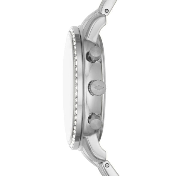 This Fossil watch is a beautiful and eye-catching ladies watch. The case material is stainless steel and the dial colour is silver. It has a multi link stainless steel bracelet strap. Other features of the watch include (among others) a chronograph and date function.
