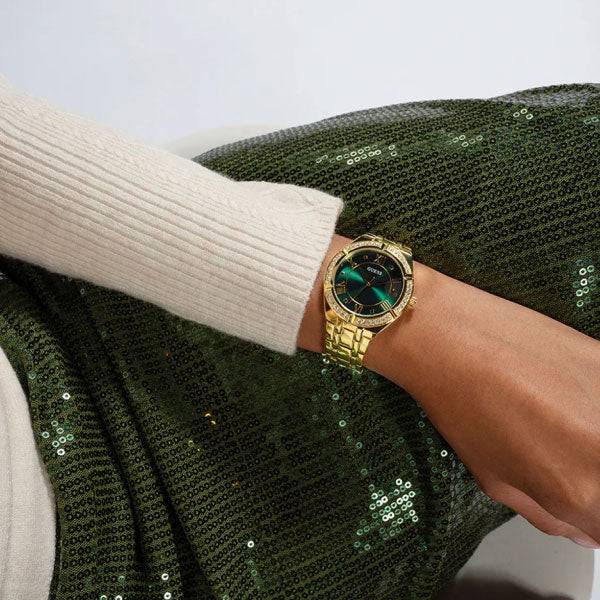 A sport watch with sparkling crystals pairs effortlessly with any look giving you the gift of glam!