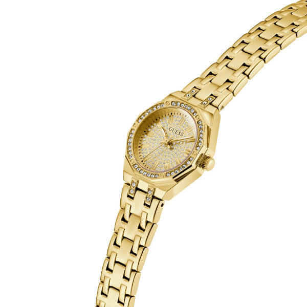Glamour takes centre stage in this dazzling gold style where crystals embellish both the bezel and bracelet for maximum sparkle. The glitzy dial catches light from every angle and the 25 mm case makes for a petite but powerful piece!