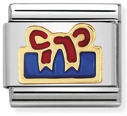 COMPOSABLE Clasic FUN in stainless steel with enamel and 18k gold Blue present with red ribbon