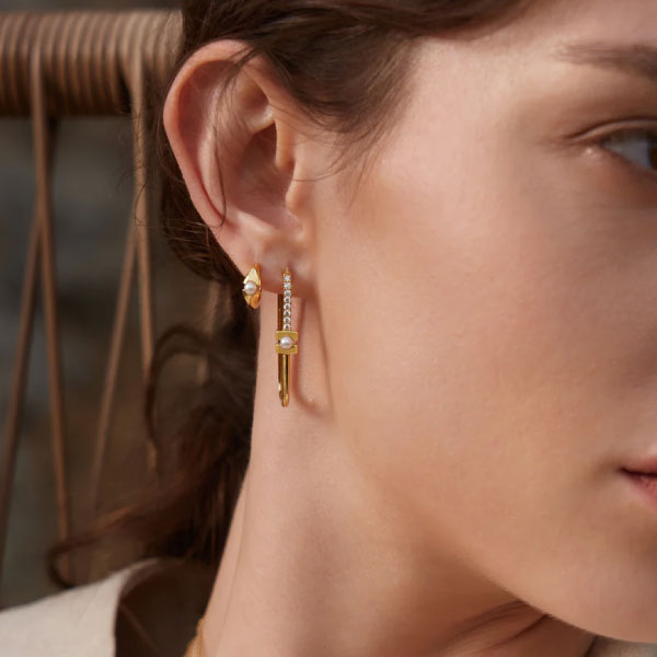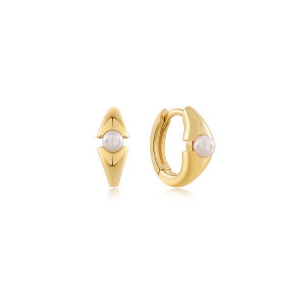 Ania Haie Gold Pearl Geometric Huggie Hoop Earrings