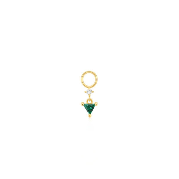 Elevate your huggies and hoops in an instant with this spectacular earring charm, perfect when you're in the mood for sparkle and colour. Pairing a sparkling cubic zirconia stone and deep green nano gemstone, this earring charm crafted from 925 sterling silver with 14kt gold plating slips onto any of our huggies or hoops to create a unique finish that keeps your collection versatile and wearable.