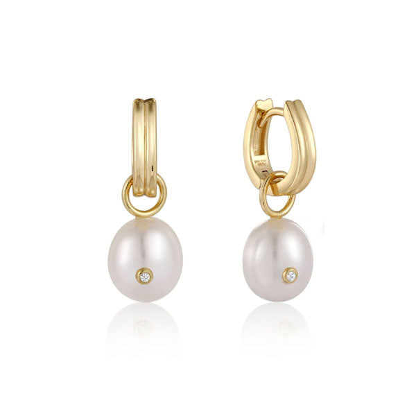 Ania Haie Pearl Drop Sparkle Huggie Hoop Gold