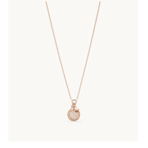 Rose coloured multi pendant necklace with pave centre detail