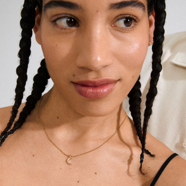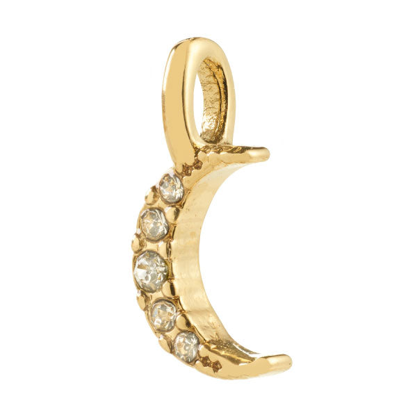 Make your own statement - with the small gold-plated crescent moon pendant from Pilgrim. Decorated with sparkling crystals, it symbolizes the moon's magical energy and new beginnings. A small charm that adds a touch of mystique and spirituality to your look, working perfectly on a chain or bracelet. Wear it alone for a minimalist touch, or mix with multiple charms for a unique style that reflects your own dreams and goals.