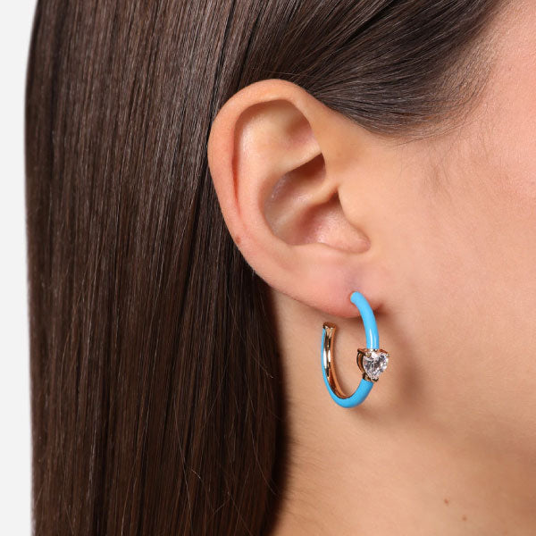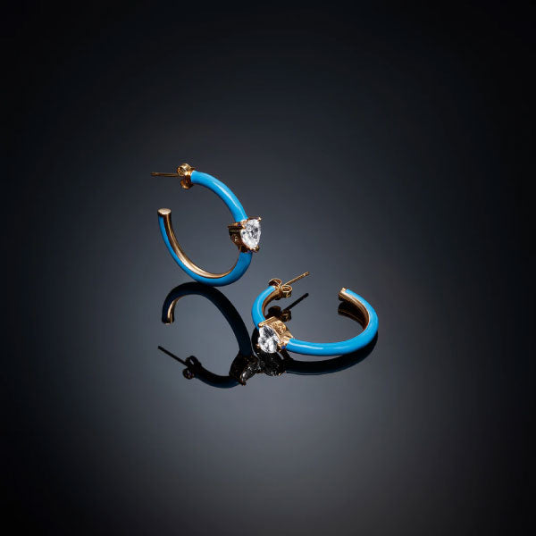 27mm light blue enamel earrings with white heart-shaped zirconia plated in 18K gold