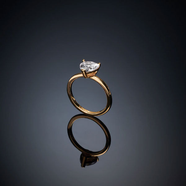 Ring with white heart-shaped zirconia, plated in 18K gold