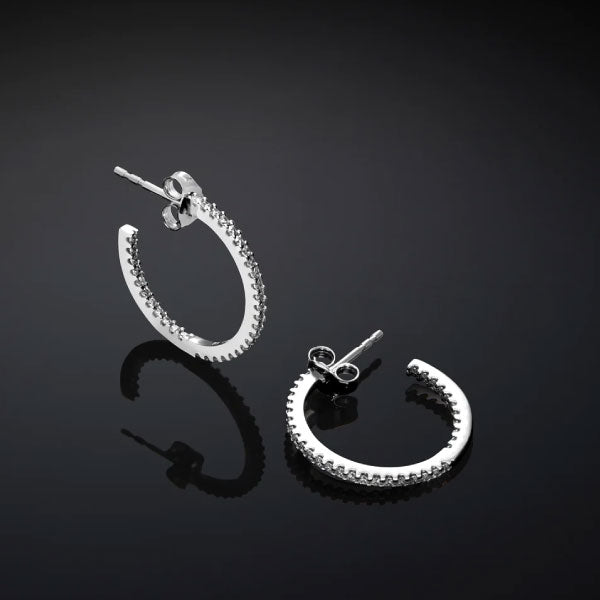 Hoop earrings made of 925 sterling silver with a pavé of white cubic zirconia.