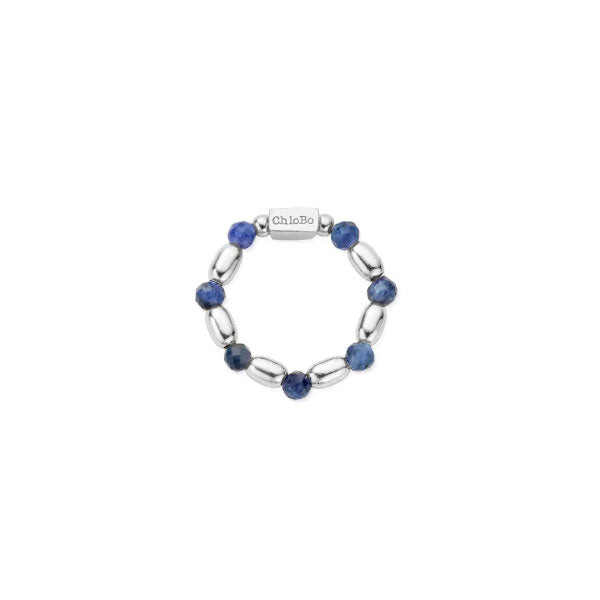 Reflecting the deep blue hues of the midnight sky, this stone encourages you to be your true self, encouraging alignment and allowing you to connect with your inner wisdom. Placed among dainty rice beads, this piece is guaranteed to elevate your ring stack.