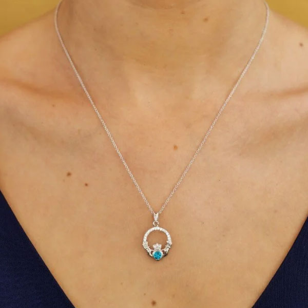Claddagh December Birthstone Pendant Necklace