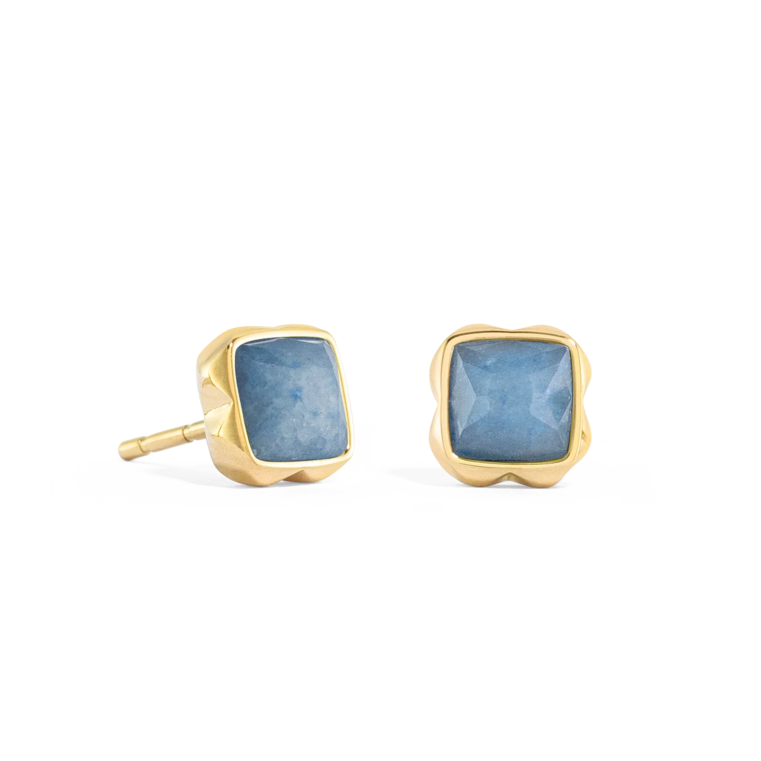 Coeur de Lion March Blue Aventurine Gold Birthstone Earrings