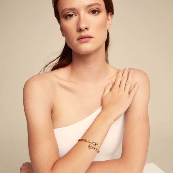 Rigid 18ct gold plated metal alloy bracelet with inner spring. Jewel 100% handcrafted in Spain, achieving a unique design finish.