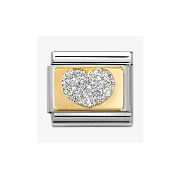Add a touch of sparkle and sentiment to your Nomination bracelet with this beautiful glitter heart charm. Crafted in stainless steel with shimmering enamel and elegant 18k gold detailing, this charm is perfect for celebrating love, friendship, or those special moments that make your heart flutter.