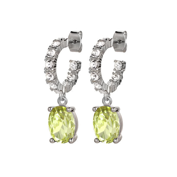 BARBARA is a luxurious hoop style earring lavishly handset with sparkling facetted crystals all over - and furthermore a larger oval oval crystal pendant.