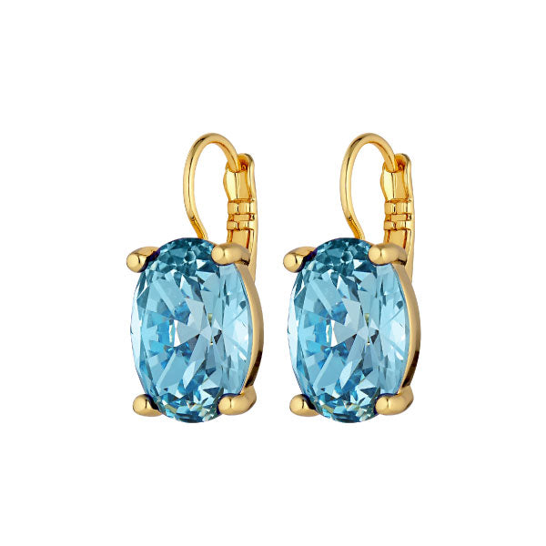 CHANTAL - a classic, yet eyecatching French hook earring created in polished brass with a prong set ovale facetted sparkling crystal and polished and plated finish. Total length appr. 22 mm. Here shown with a bluish green crystal and a shiny gold tone finish. DANISH DESIGN - free of cadmium, nickel and lead.Orders are carefully hand packed and beautifully presented by our team.
